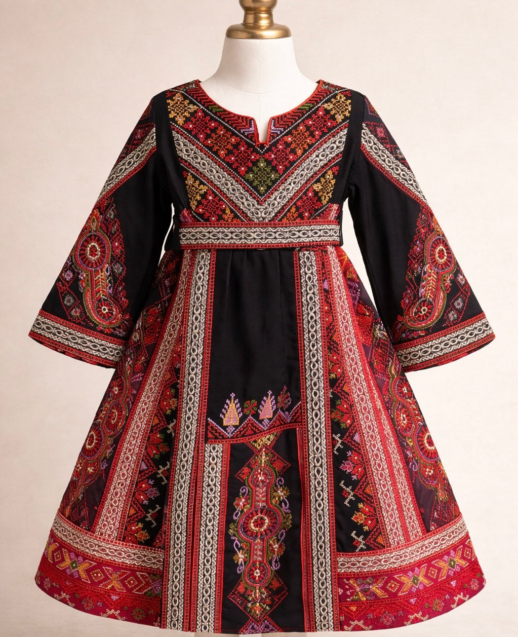 The Amar Kids Thobe is a beautiful traditional garment designed for children, thoughtfully embroidered throughout with intricate tatreez that reflects the rich artistry of Palestinian culture. Each stitch adds elegance and meaning, showcasing timeless patterns that celebrate heritage while remaining soft, graceful, and child-friendly.