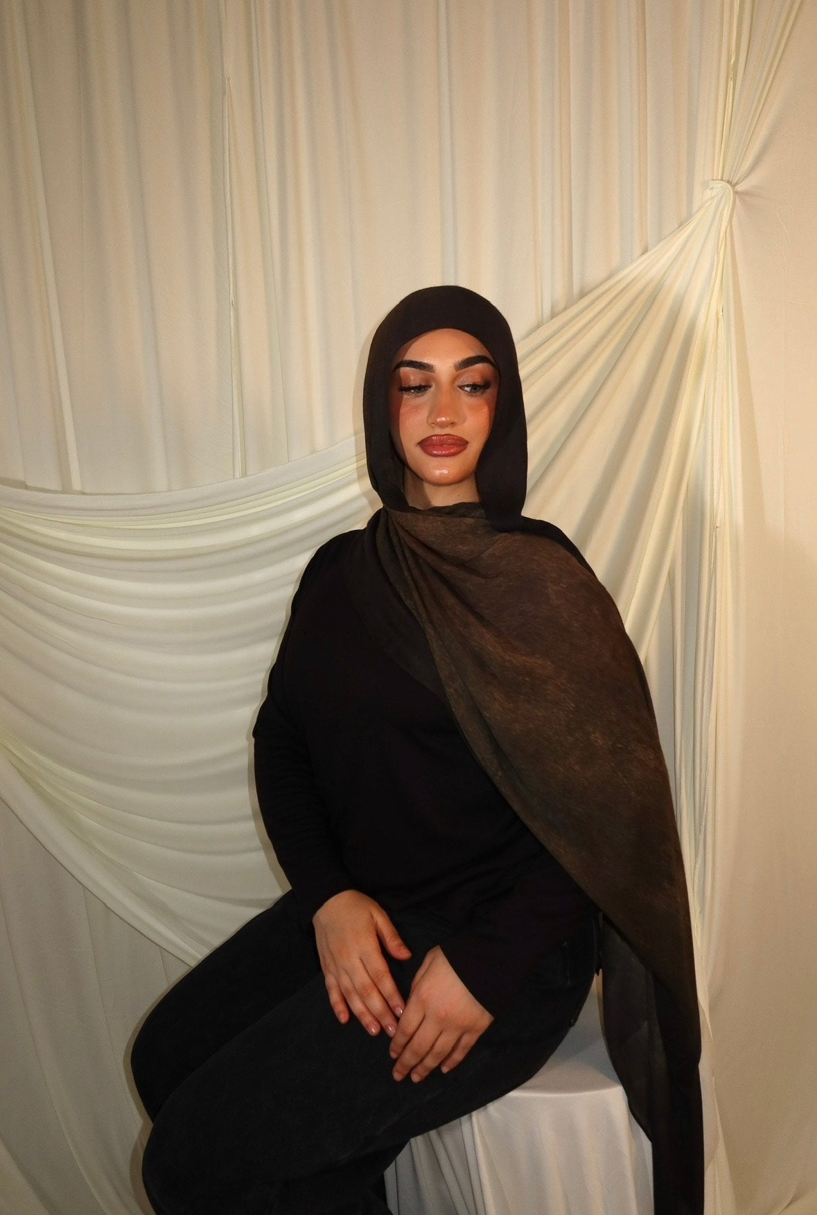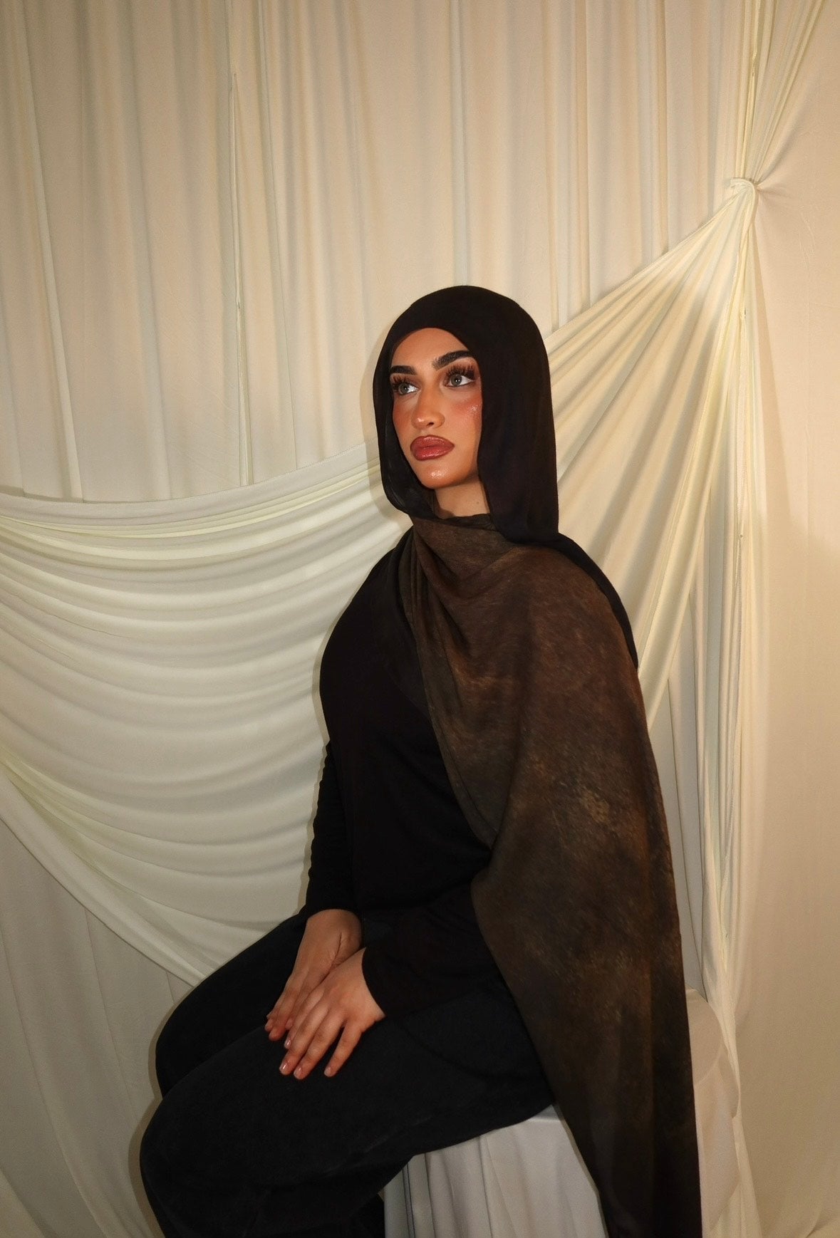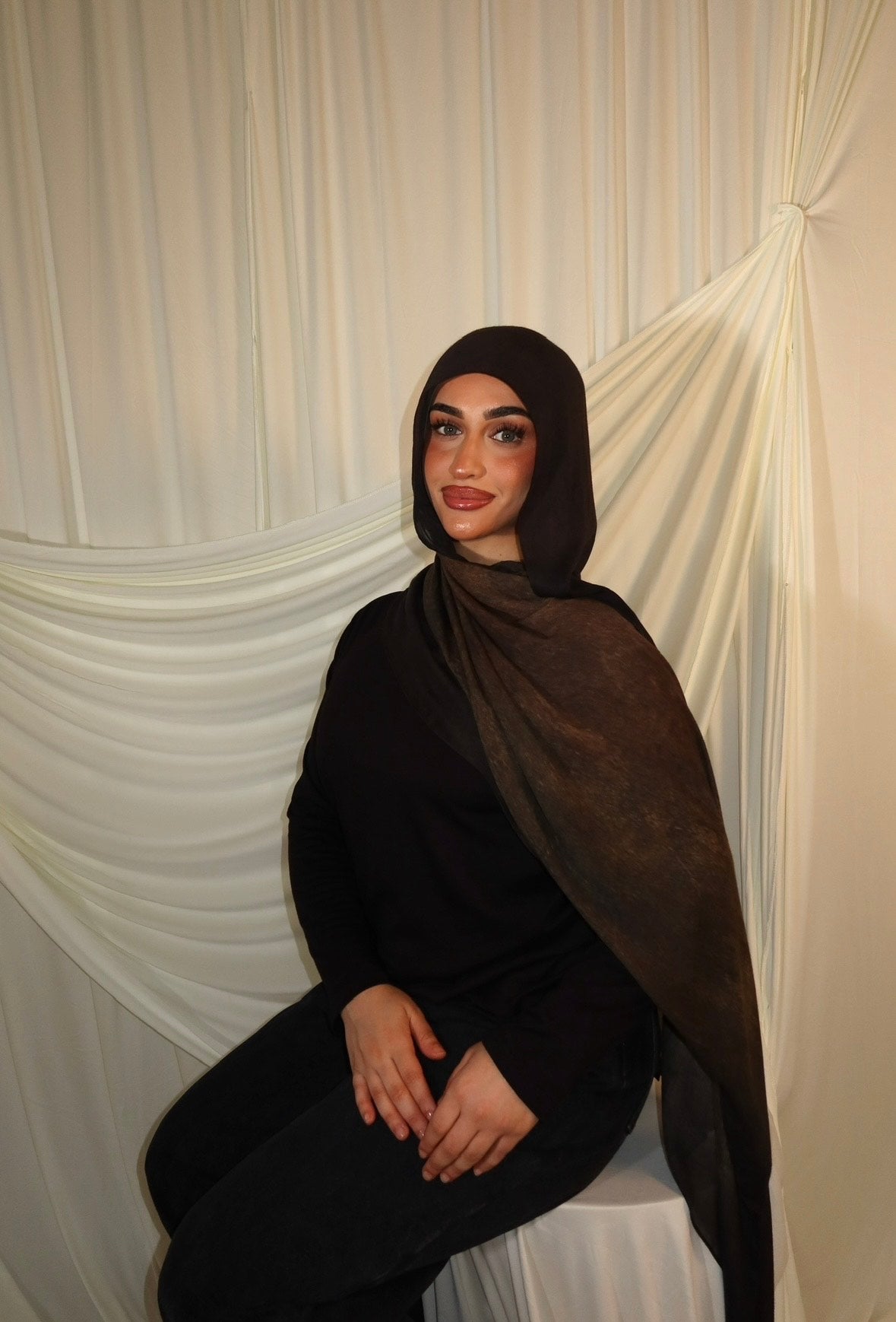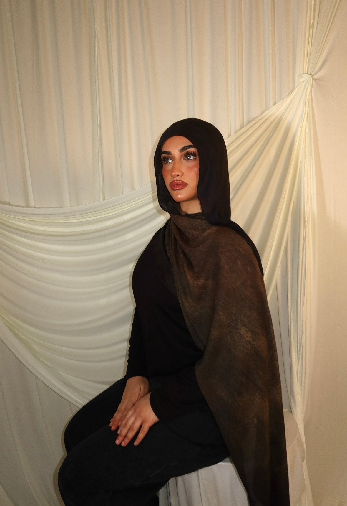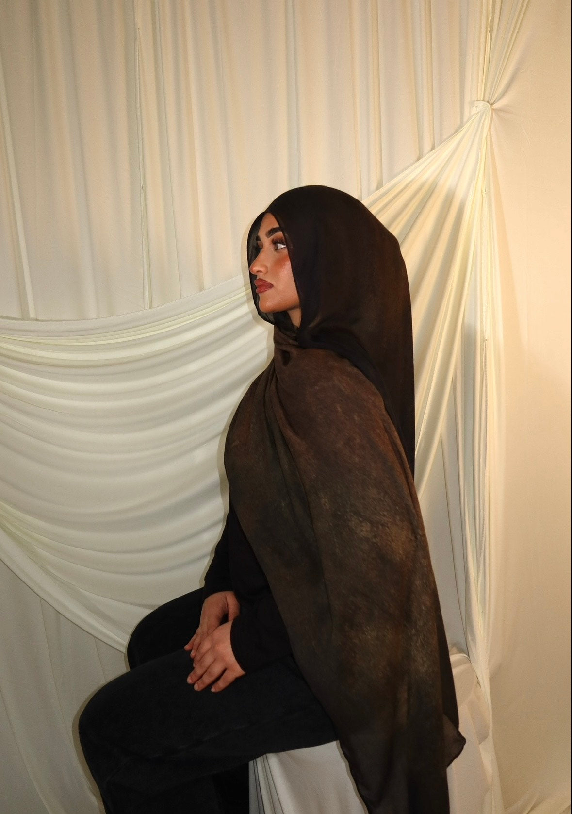 Wrap yourself in elegance and effortless grace with Cave, our beautifully crafted ombre hijab in a warm, rich brown—a universally flattering shade that complements all skin tones.
