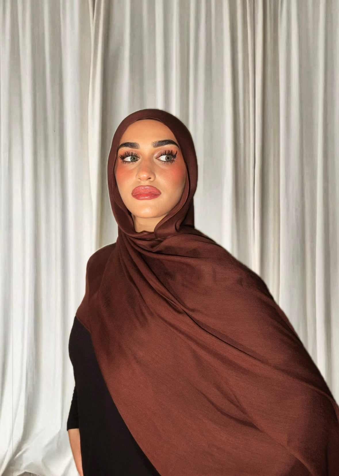 Experience cozy elegance with our Rich Chocolate Modal Hijab, crafted from luxuriously soft modal fabric that drapes smoothly and feels gentle on your skin. This deep, warm chocolate shade adds a touch of timeless sophistication to any outfit.