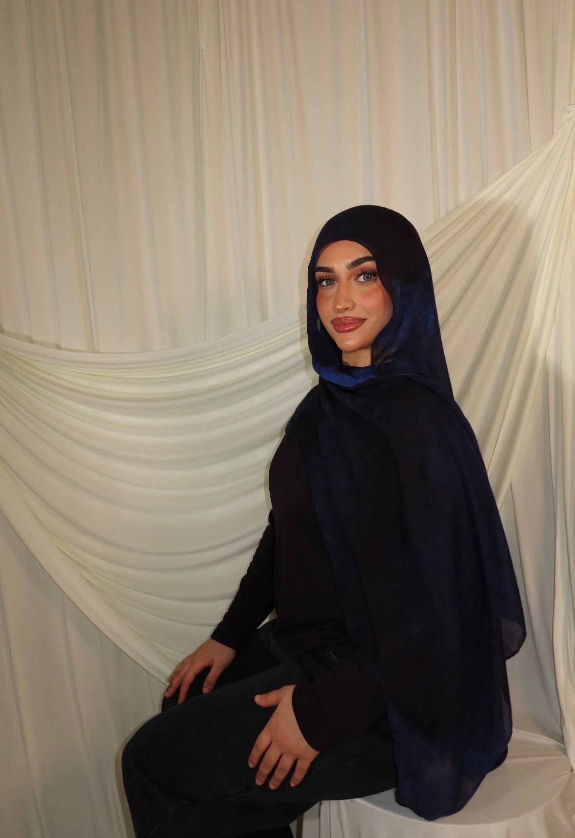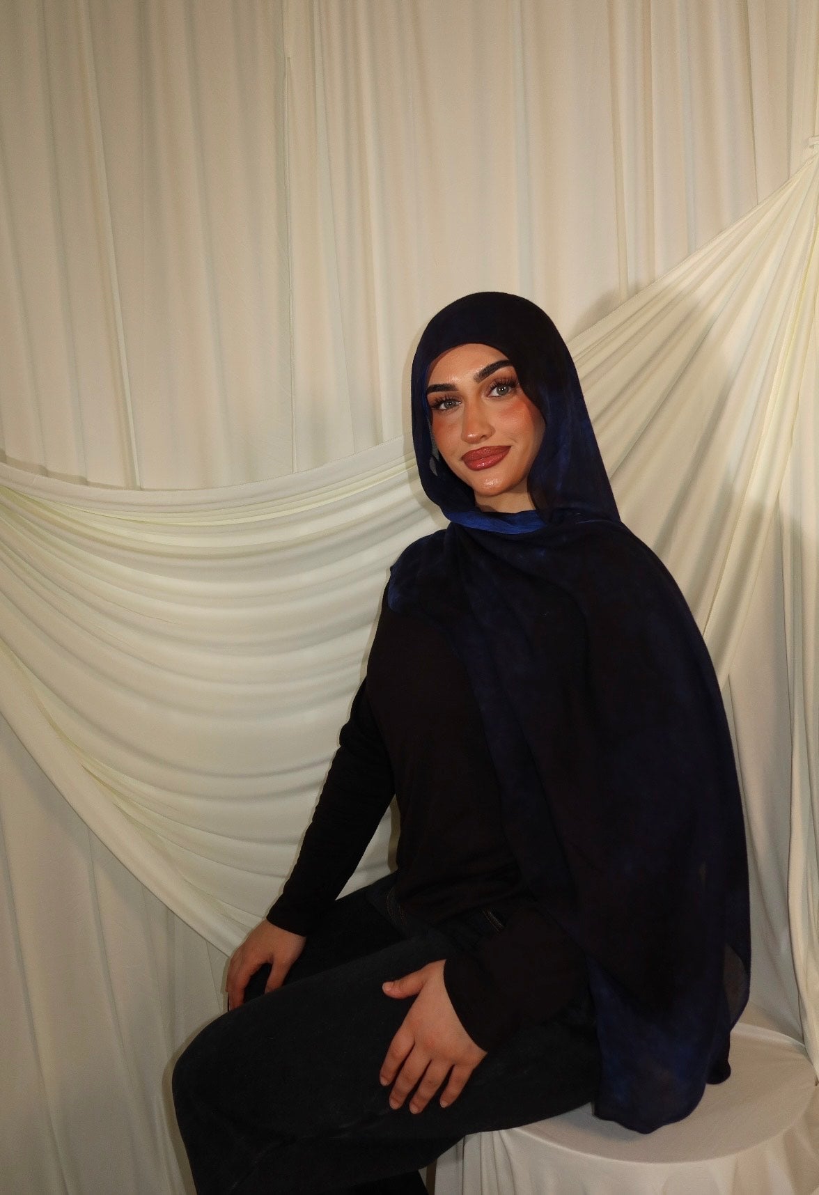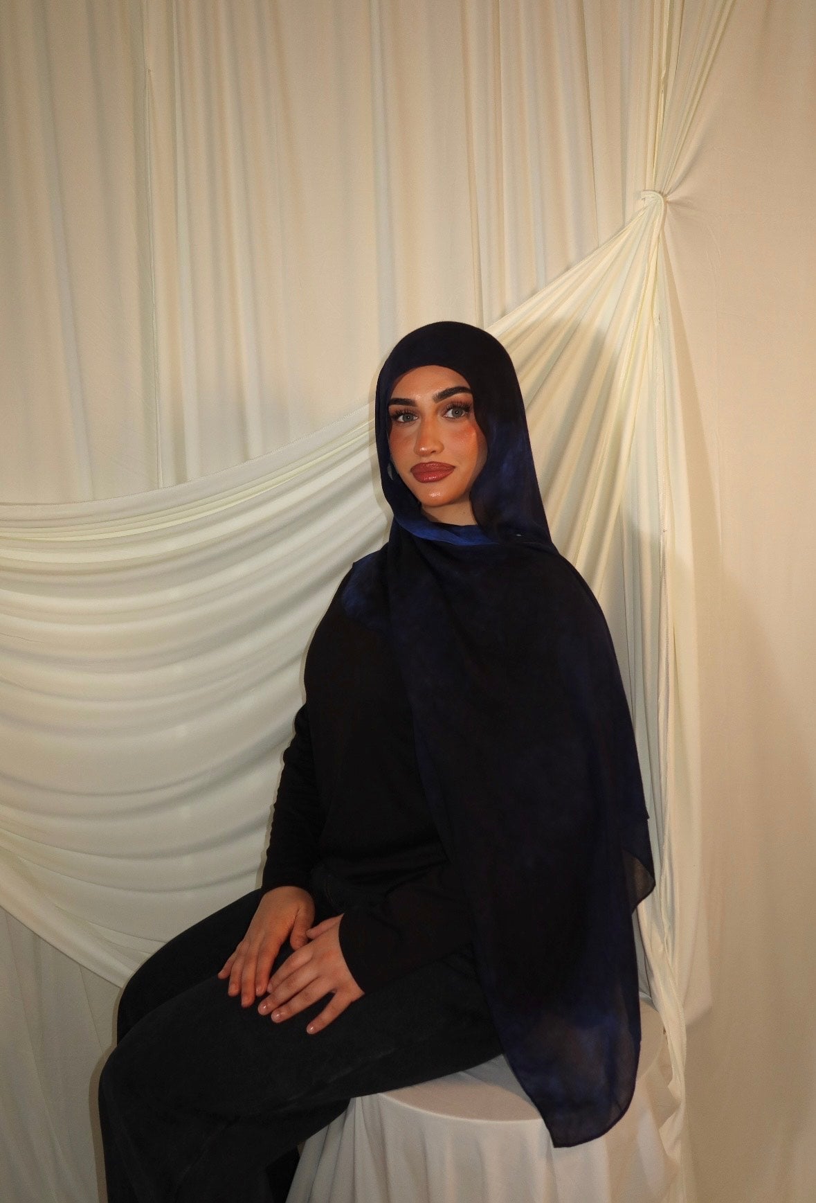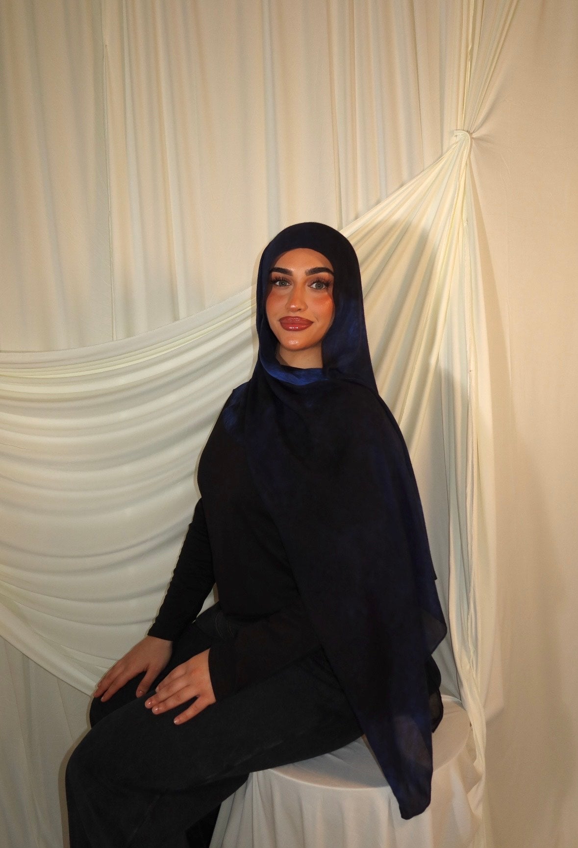 Illusion Blue is our beautifully crafted hijab in a deep black-to-blue ombré — a striking gradient that adds depth, drama, and elegance to any look. More than just a piece of fabric, Illusion Blue is a tribute to modesty, confidence, and understated power.