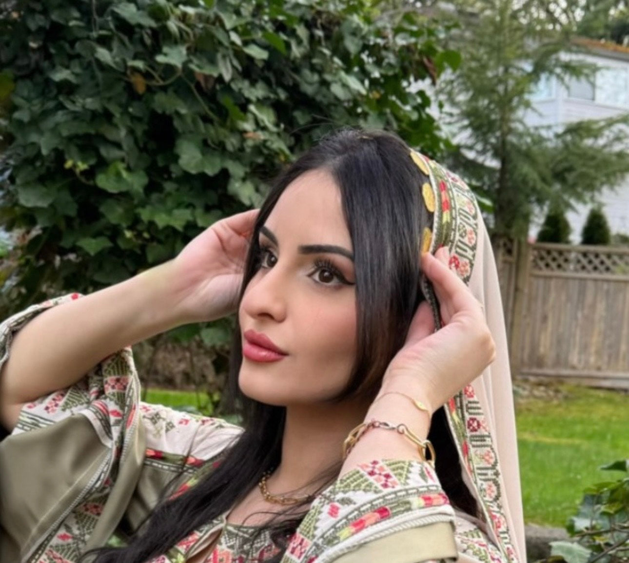 Lara Headpiece with replica gold coins traditionally worn by women, especially at weddings, symbolizing wealth, heritage, and status. Headpiece patterns may vary.