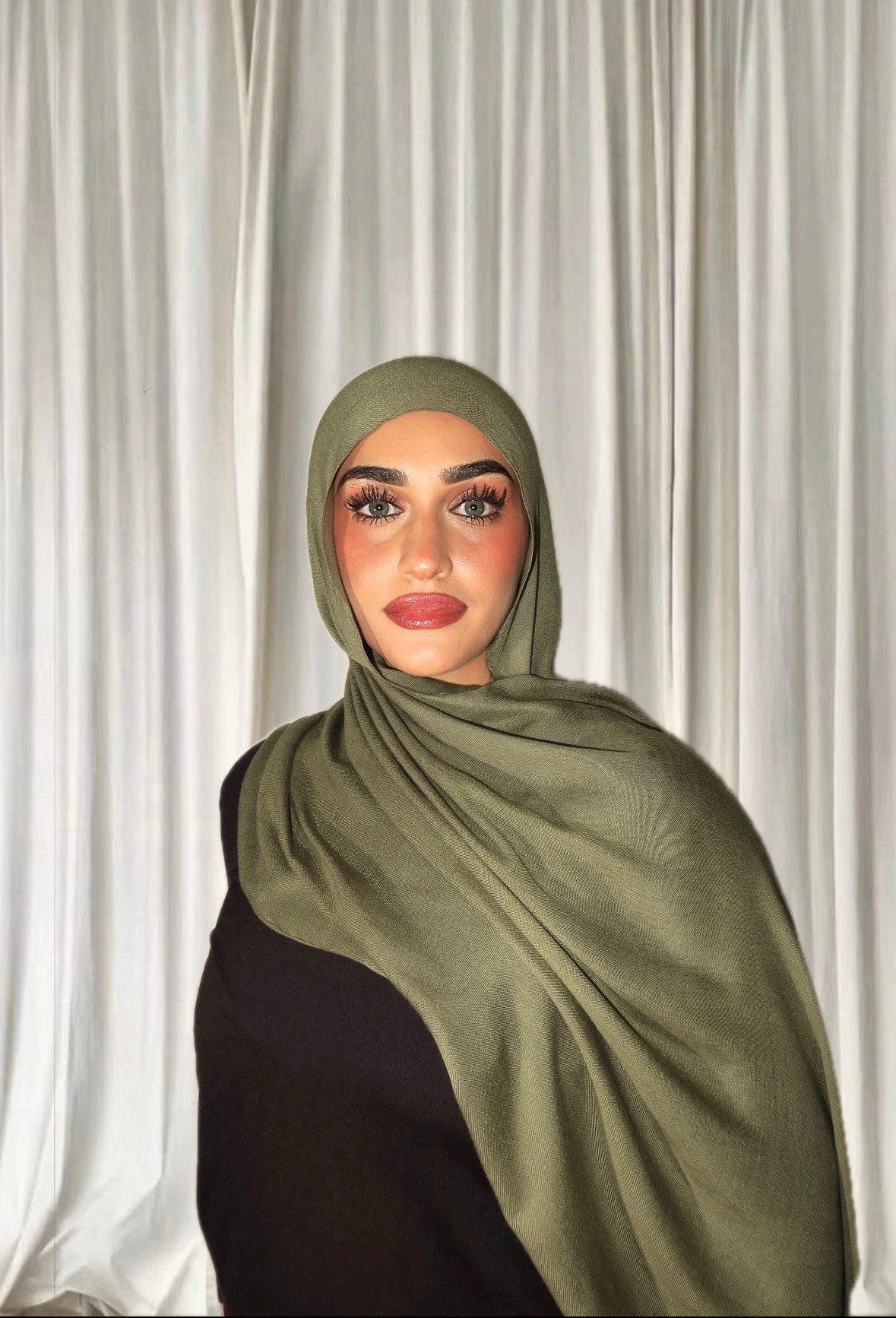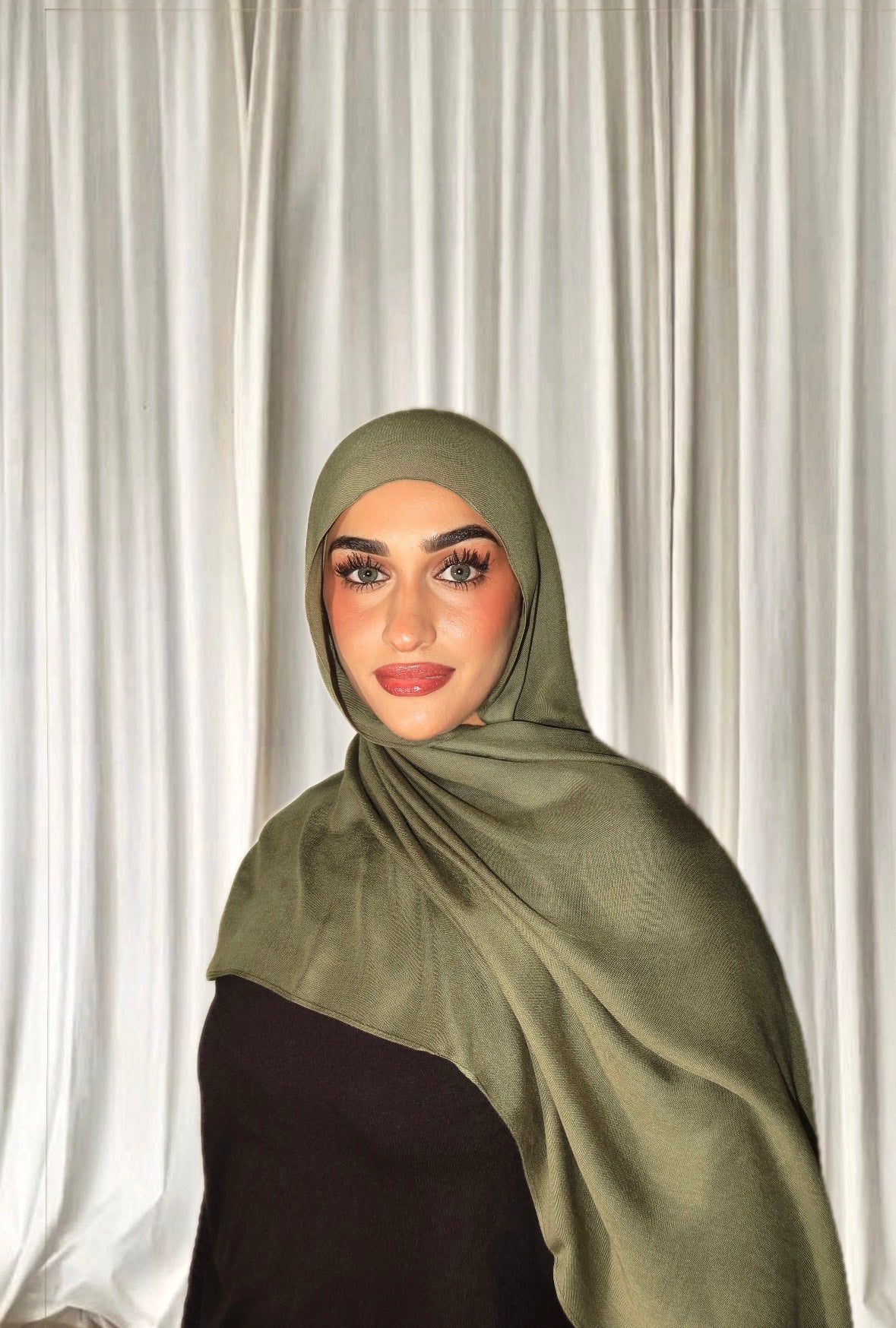 Wrap yourself in luxury with our Olive Modal Hijab, crafted from soft, breathable modal fabric that drapes gracefully and feels gentle against the skin. This rich Olive shade adds a vibrant yet sophisticated splash of color to any ensemble.
