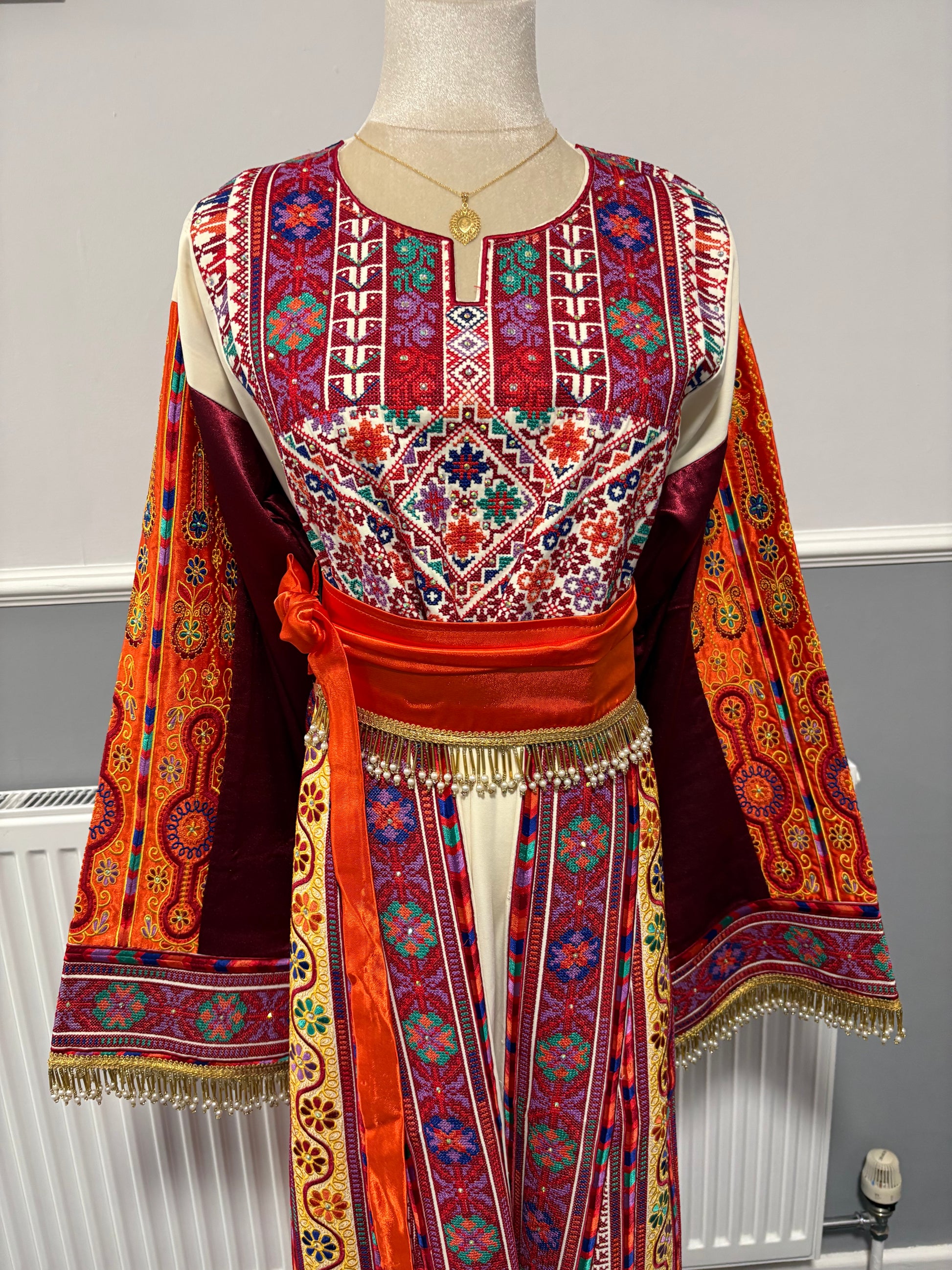 The Afaf Thobe is a striking fusion of tradition and elegance. The Afaf Thobe is perfect for weddings, Eid, cultural events, and formal occasions. The belt is also included in the price - patterns may vary.