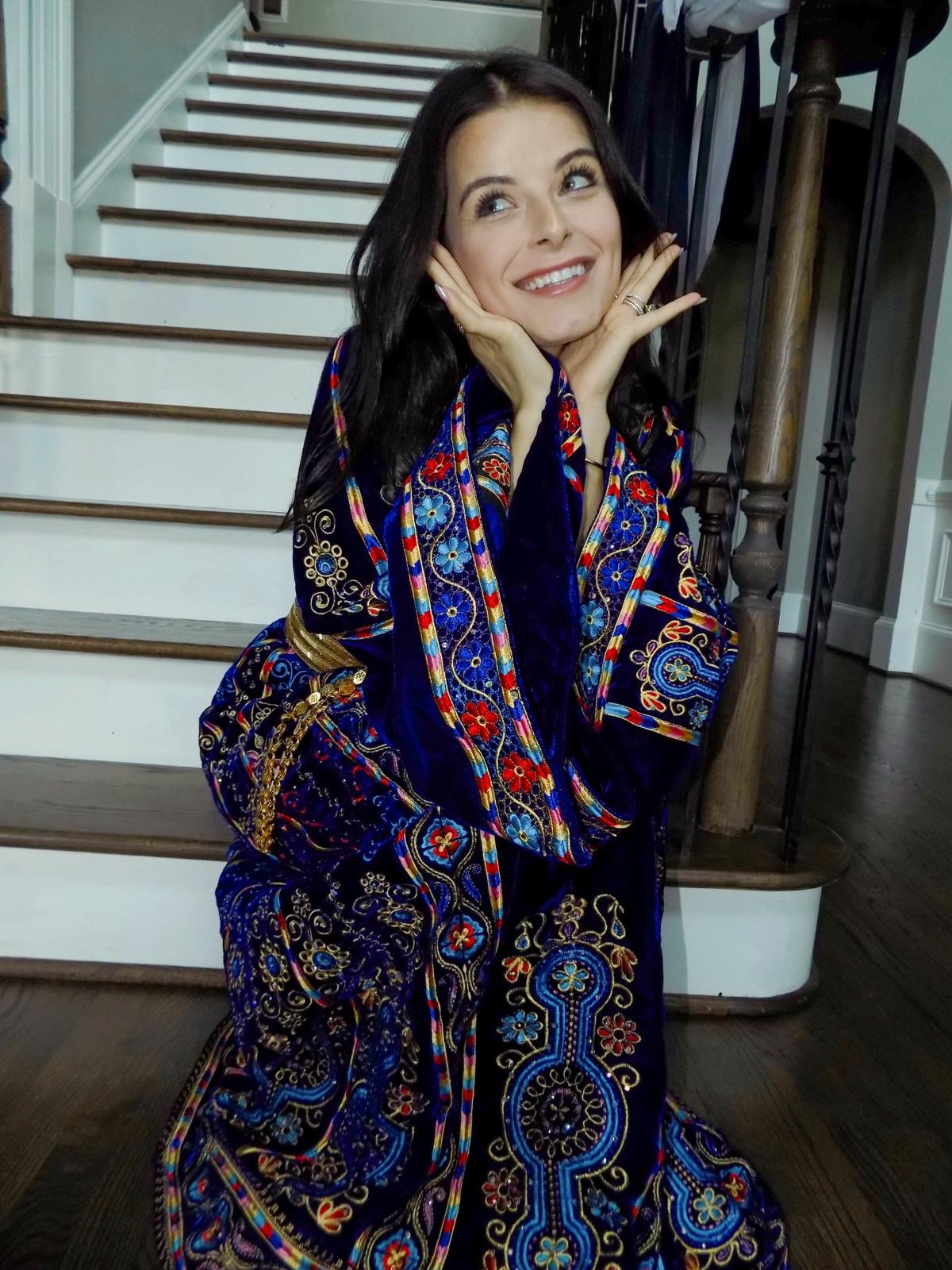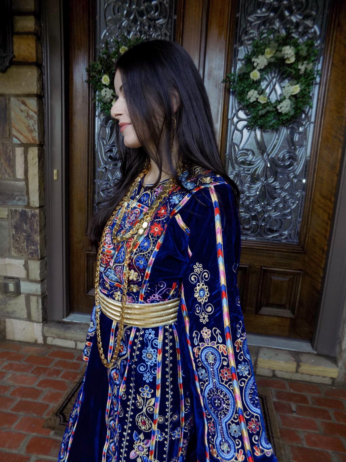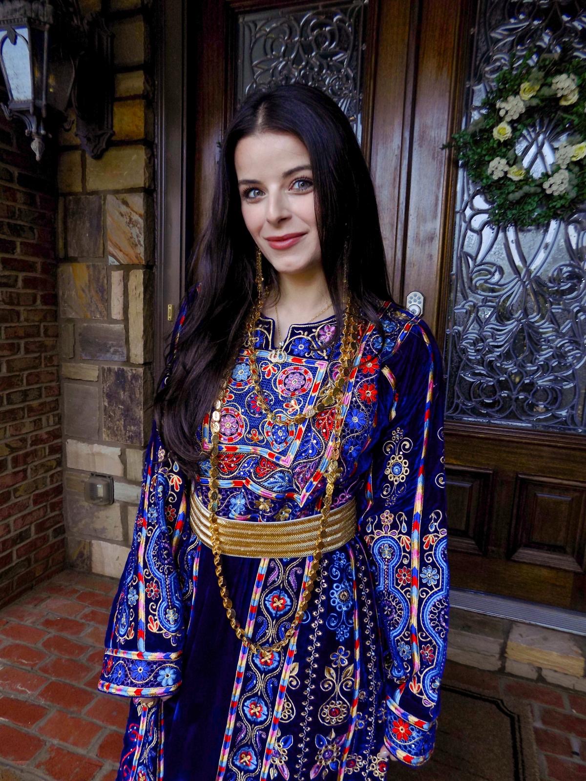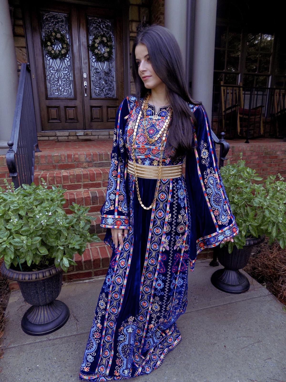 • Embroidered tatreez motifs inspired by ancient Palestinian patterns.