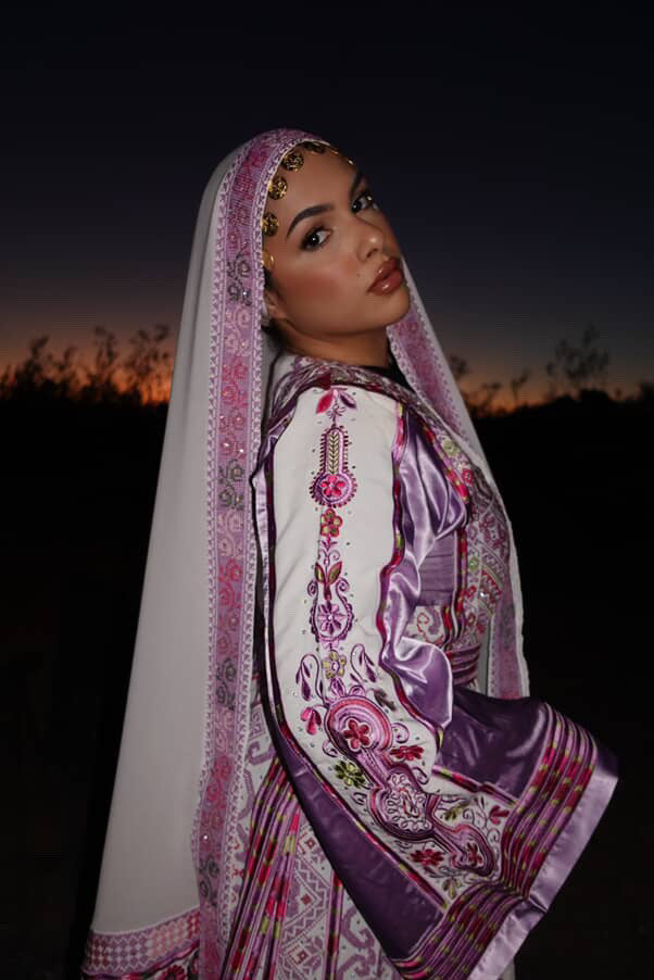 The Fulla headpiece is a captivating accessory crafted in a delicate lilac hue (headpiece patterns may vary). Inspired by tatreez redifined by Warda of London. It blends cultural richness with modern sophistication, making it a meaningful statement piece for any special occasion.