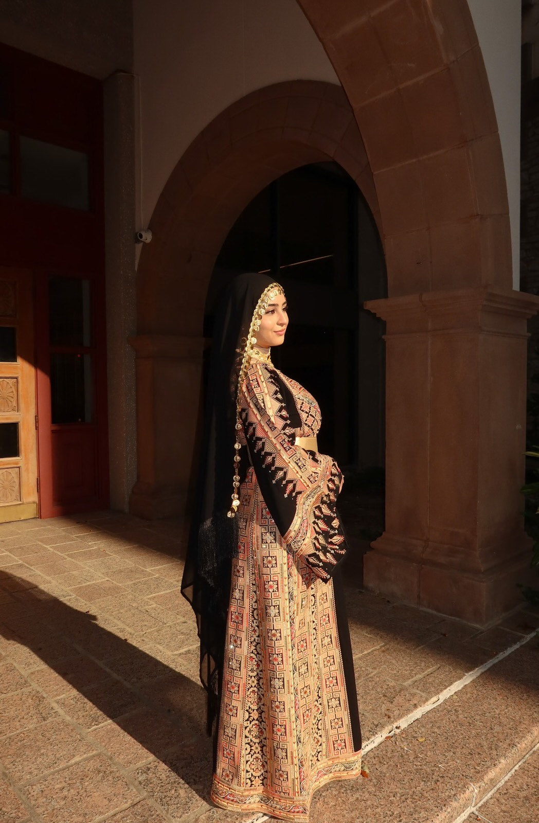 •Black Headpiece with replica gold coins.