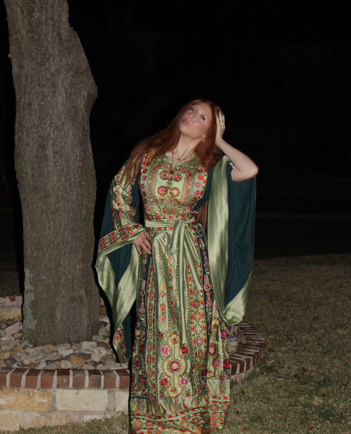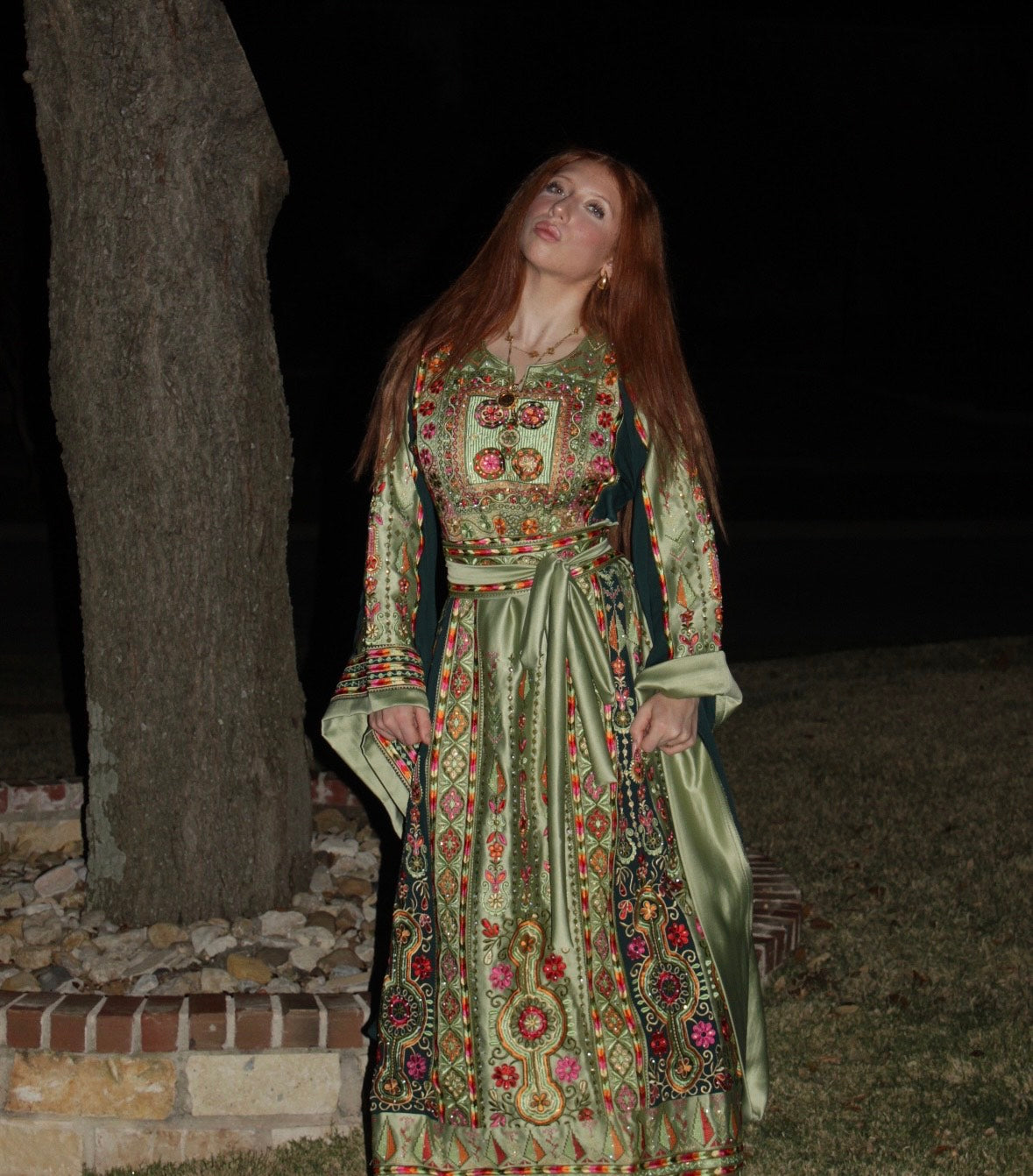 • Embroidered tatreez motifs inspired by ancient Palestinian patterns.